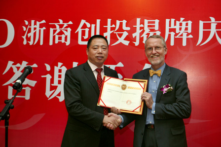 浙商創投董事局主席陳阿裕先生向貝祥先生頒發高級顧問聘書