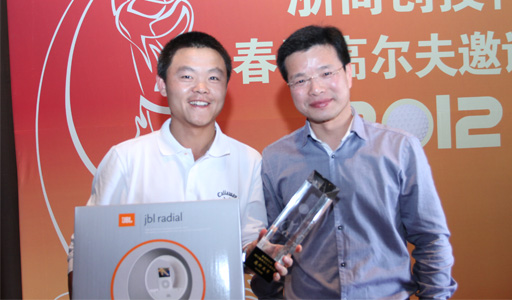 為北京中軟金卡信息公司董事長王軍(右)頒得“凈桿冠軍”