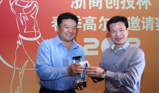 浙商創投董事長陳越孟(右)為北京金房房地產公司董事長金飛鴻(左)頒得“總桿冠軍”