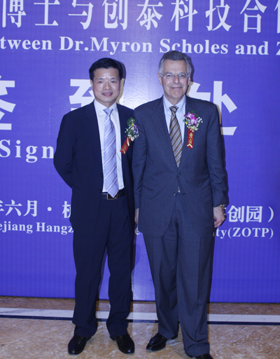 陳越孟在發言中說:“浙商創投作為浙江的民營資本代表,有機會同國際資本共同投資于海歸創業企業創泰科技,對我們來說,是一個榮幸更是一個契機。創泰科技的業務和產品具有獨特的概念,較高的技術壁壘和遠大的行業前景,還擁有富有創造力的創業團隊。而公司坐落的海創園,從2010年7月掛牌開始,就以引進海外高層次人才為前提,尤其重視"帶項目、帶技術、帶資金"的創業創新人才及團隊的引進。創泰科技正是海創園里最具代表性的企業之一,而浙商創投投資創泰科技也符合海創園鼓勵民營資本與海外人才合作創業的宗旨。21世紀的希望在中國,斯科爾斯博士能同浙江的民營資本,海歸企業精誠合作,使我們對創泰科技的美好未來有了更多期待。我們更希望這是美好的第一次,浙商創投愿意并且期待與斯科爾斯博士進一步合作,在浙江在杭州投資更多科技型企業。”