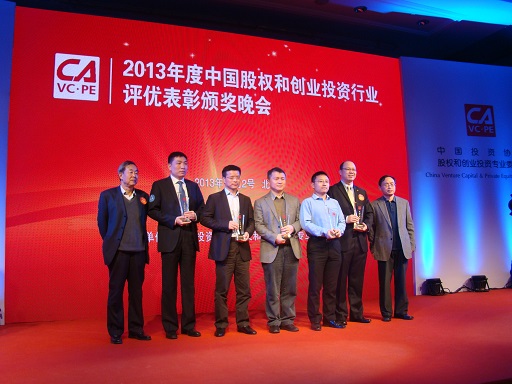 由中國投資協(xié)會股權(quán)和創(chuàng)業(yè)投資專業(yè)委員會(簡稱中國創(chuàng)投委)主辦的“2013年度中國股權(quán)和創(chuàng)業(yè)投資行業(yè)評優(yōu)表彰頒獎晚會”于2013年11月2日在北京國賓酒店隆重舉行。國務(wù)院相關(guān)部委領(lǐng)導(dǎo)、省級備案管理部門相關(guān)領(lǐng)導(dǎo)以及創(chuàng)業(yè)投資行業(yè)代表近300人出席了會議。